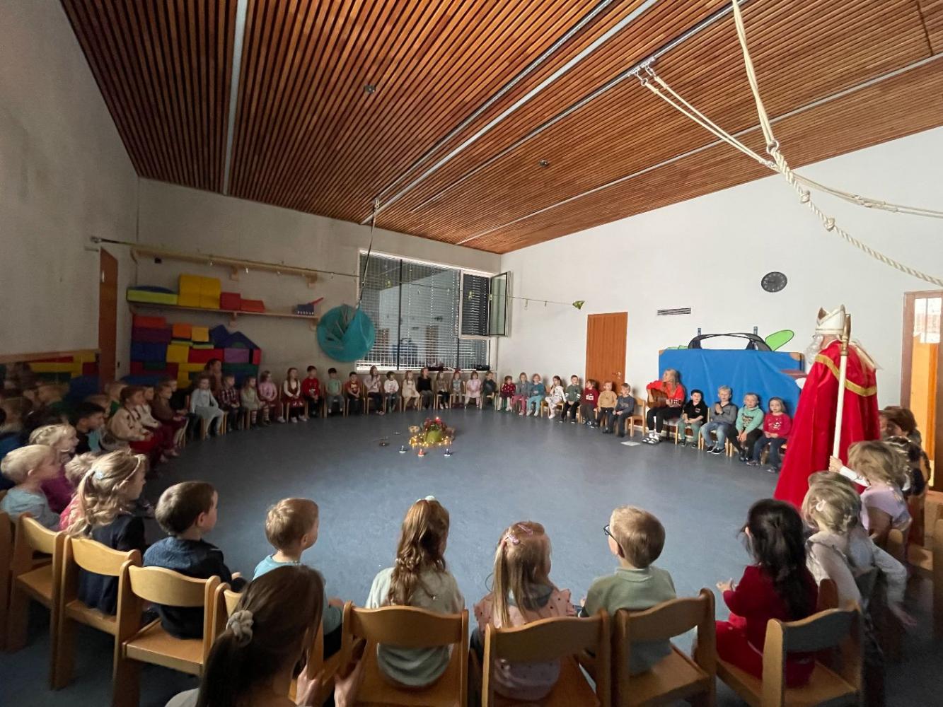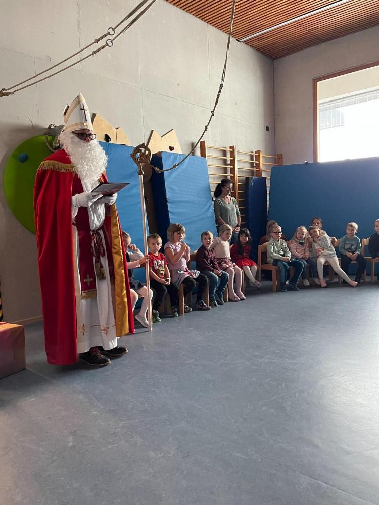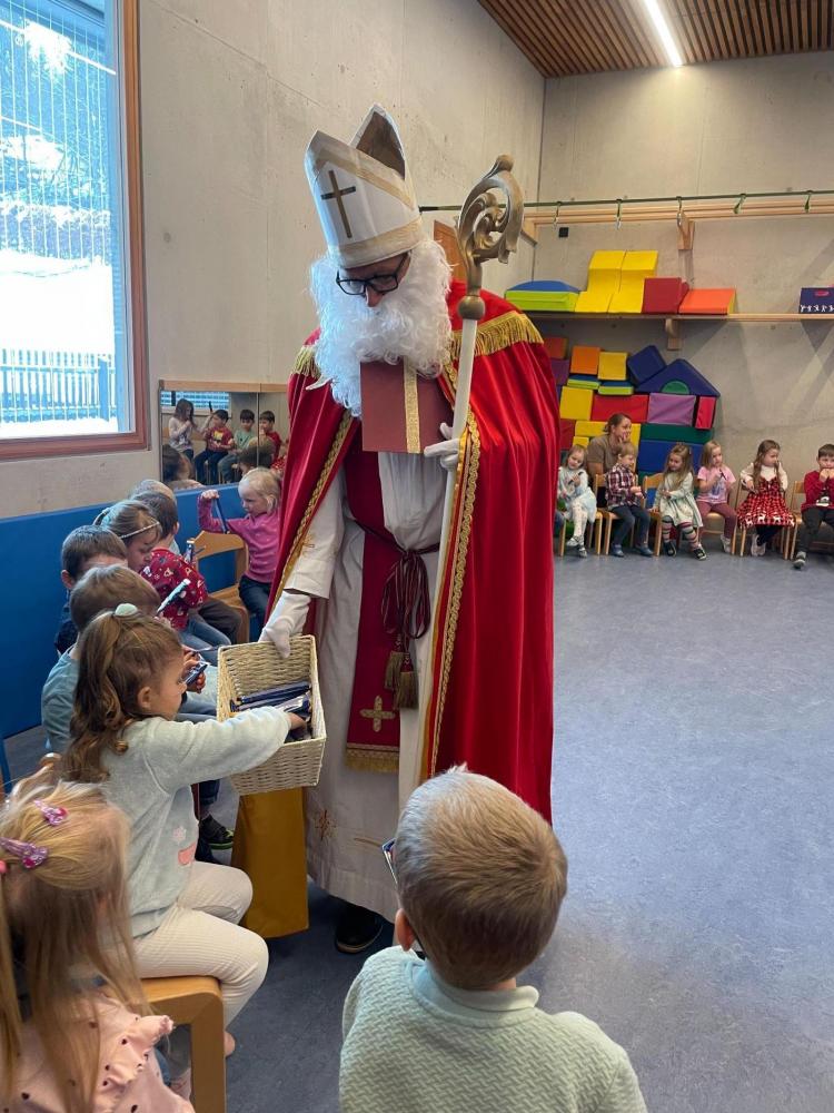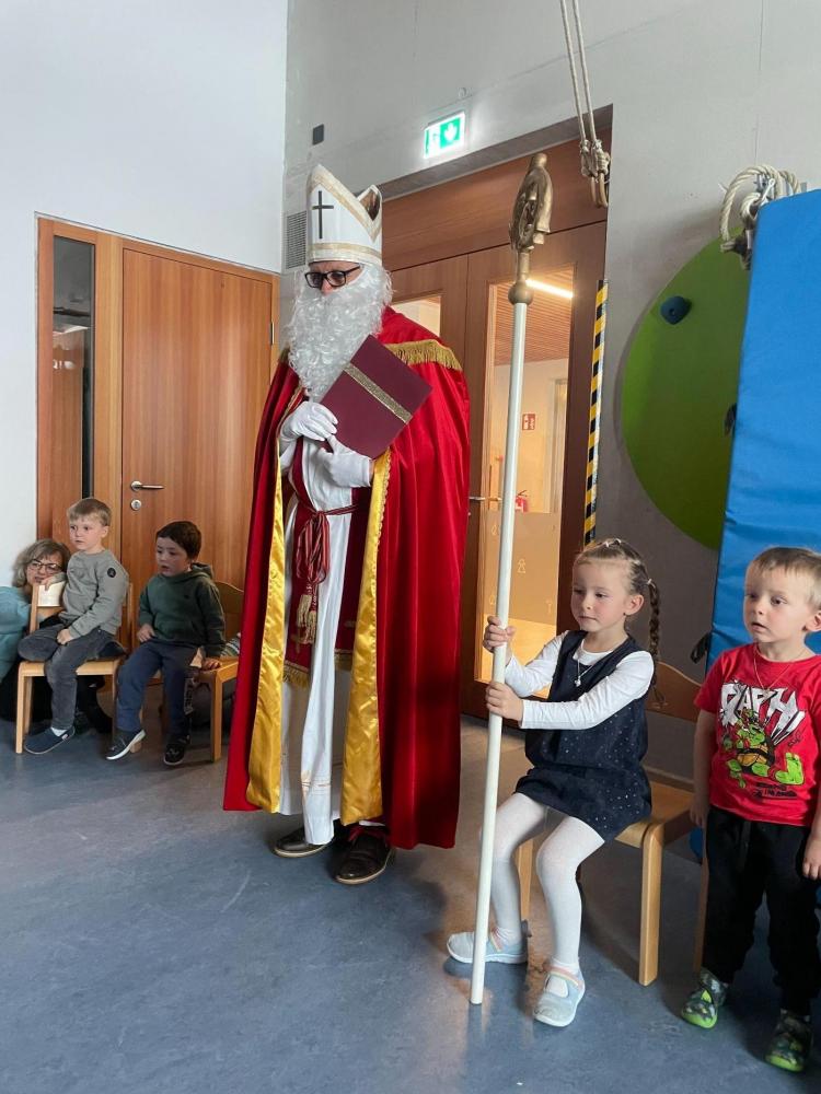 Alle Kinder haben gemeinsam dem Nikolaus Lieder vorgesungen, ein Fingerspiel und ein Gebet vorgetragen - darüber hat er sich sehr gefreut! Danach hat der Nikolaus Worte an die Kinder gerichtet und erzählt, was er und seine Engel alles beobachten konnten.