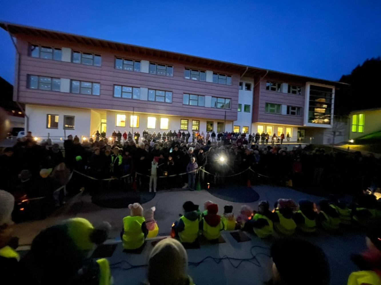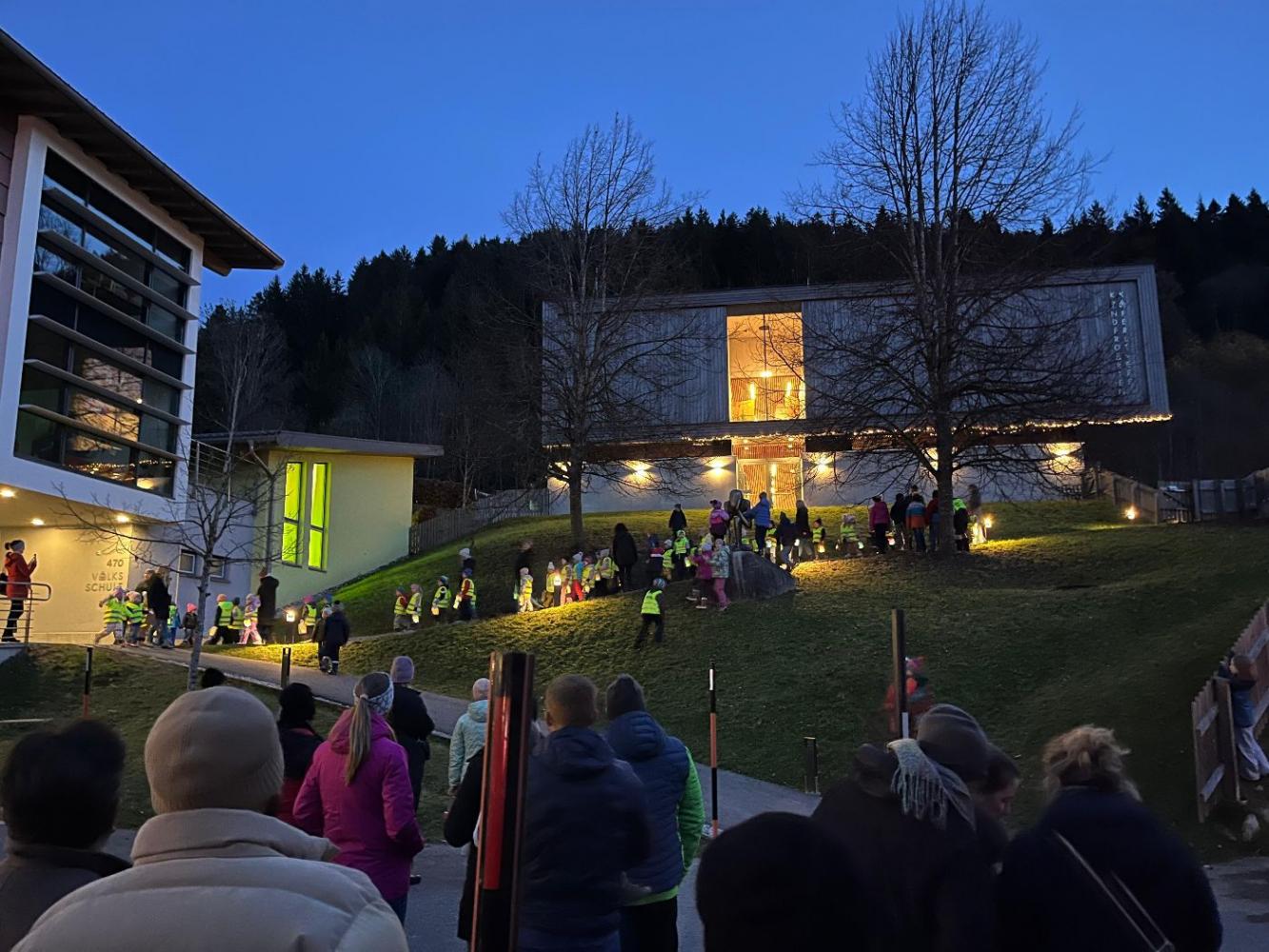 Singend und mit leuchtenden Laternen zogen die Kinder und BesucherInnen gemeinsam zum Kindergarten, wo ein liebevoll gestalteter Ausklang auf sie wartete. Durch einen festlich geschmückten Lichterbogen gelangten alle zum stimmungsvoll dekorierten Festplatz. Bei Weisenbläser-Klängen, Punsch und Glühwein klang der Abend in gemütlicher Atmosphäre aus.
