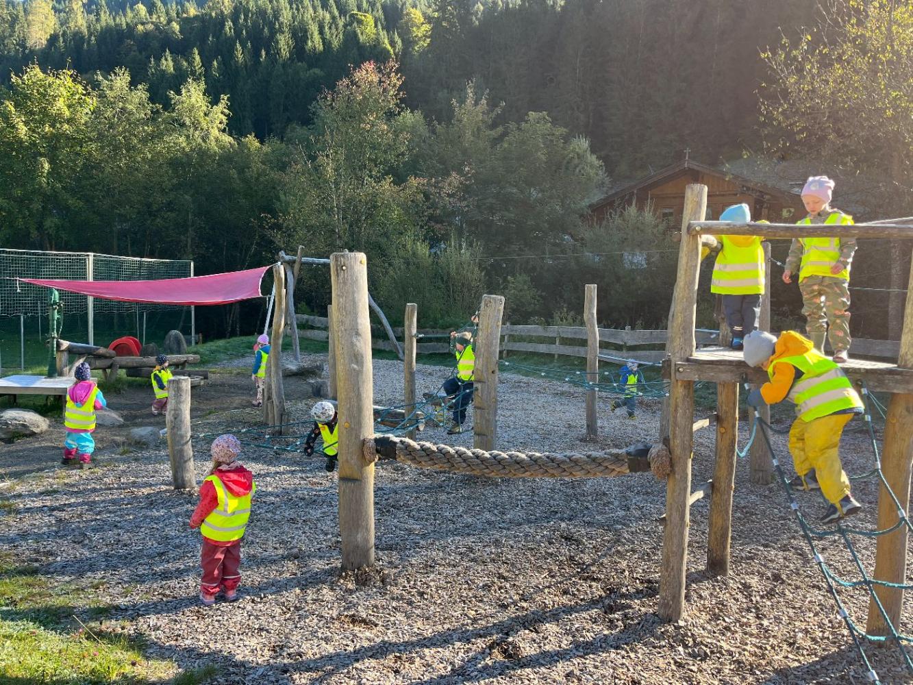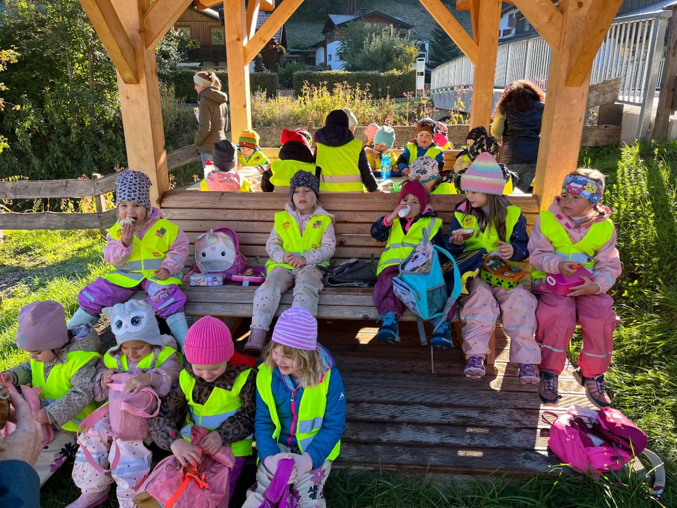 Nach einer gemütlichen Wanderung erreichten wir den Spielplatz. Dort machten alle eine wohlverdiente Pause: Jedes Kind packte seinen Rucksack aus und stärkte sich mit der mitgebrachten Jause. Anschließend blieb noch Zeit zum Spielen, Klettern und Toben - der Spielplatz wurde mit fröhlichen Kinderlachen erfüllt!